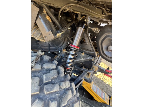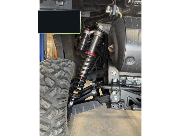 2. Remove OEM shocks. Install piggyback shock with the reservoir upward and facing outside of the vehicle. Install the IFP shock with the head upward.
